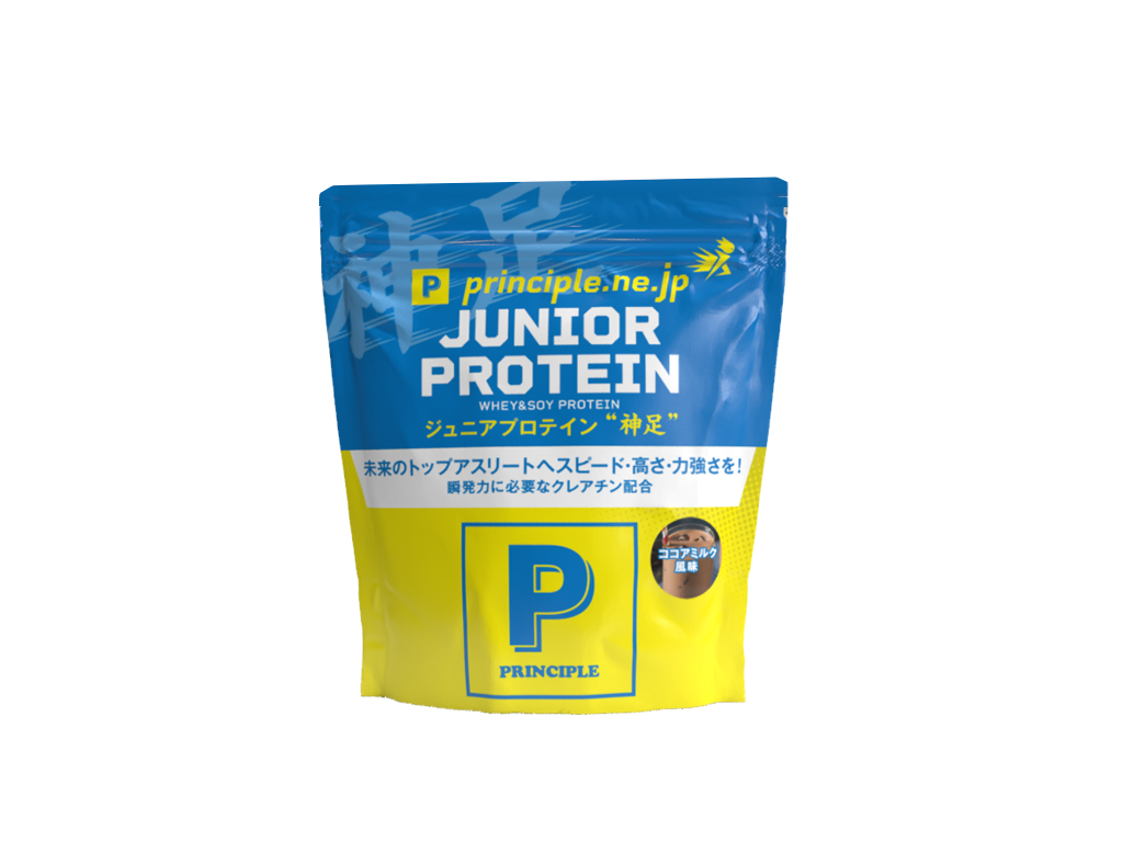 贅沢な配合で、子供たちに必要な成分を補填。クレアチンや乳酸菌、成長酵母などを配合した子供向けのプロテイン、JUNIOR PROTEIN 神足450g です。